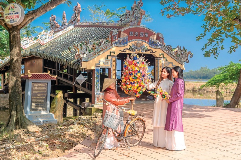 Xuân về trên cầu Ngói - Ảnh: Bảo Minh