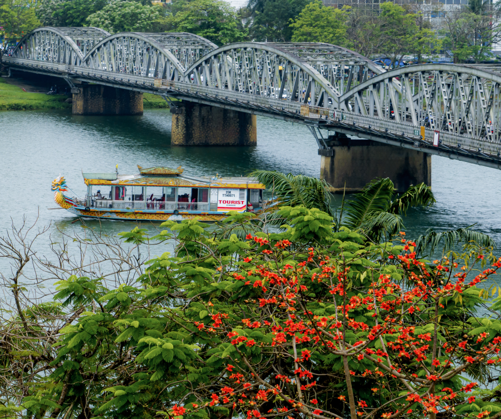 Những ngày này, đi dọc bờ sông Hương đoạn gần cầu Dã Viên nhiều người sẽ bị thu hút bởi vẻ đẹp của những bông hoa gạo đỏ rực.