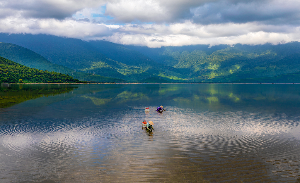 Vẻ đẹp lao động ở Đầm Lập An (Ảnh: Nhật Long)