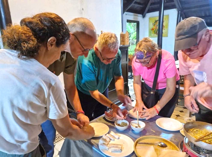 Khách trải nghiệm làm các món ăn tại cơ sở lưu trú