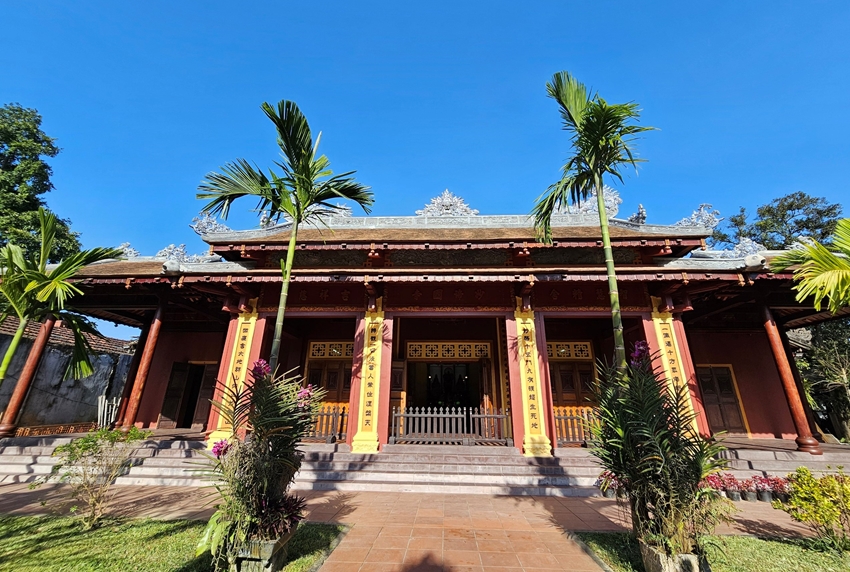 Chánh điện cũ chùa Diệu Đế sau khi được dịch chuyển lùi phía sau đã được tu bổ, gia cố