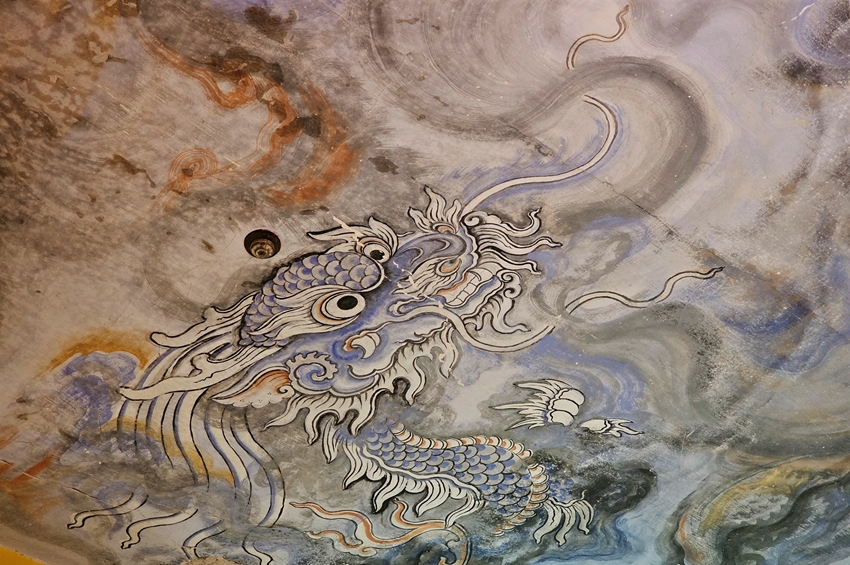 Một trong những con rồng trên trần chánh điện vô cùng ấn tượng
