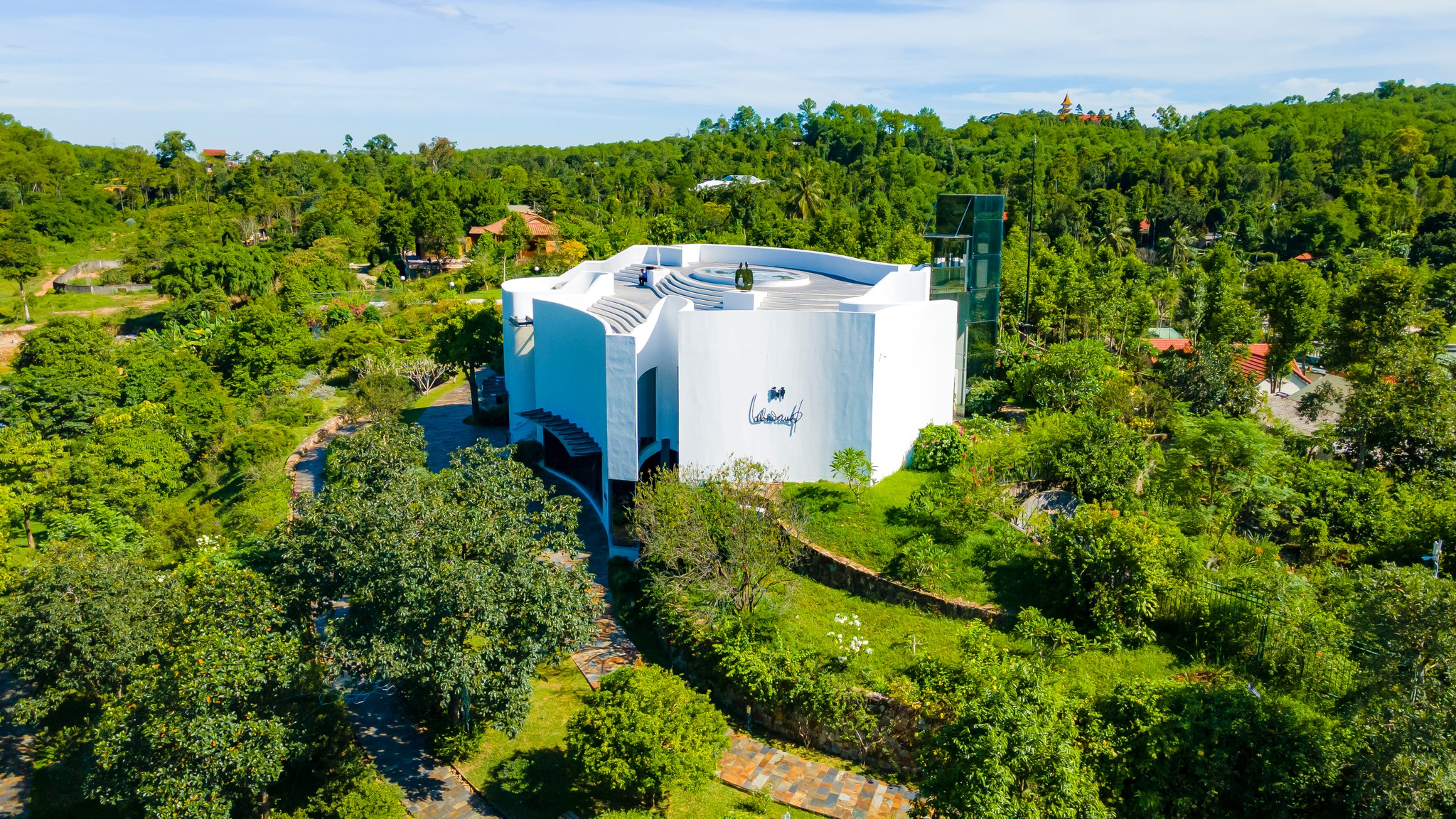 Tòa nhà chính được xây dựng trên độ cao 10 mét và được thiết kế dựa trên một tác phẩm cắt giấy của họa sĩ Lê Bá Đảng. Thiết kế này đã được bà Myshu (phu nhân họa sĩ Lê Bá Đảng) lựa chọn và được cụ thể hóa thành công trình như ngày nay bởi một đội ngũ các kiến trúc sư, chuyên gia cố vấn.