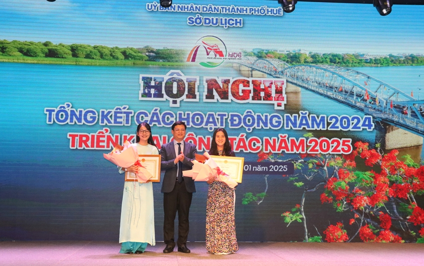 Dịp này, 2 cá nhân có thành tích xuất sắc trong việc thực hiện nhiệm vụ công tác năm 2024 được Chủ tịch UBND TP. Huế tặng bằng khen. Bên cạnh đó, Chủ tịch UBND TP. Huế cũng tặng bằng khen cho Công ty Cổ phần BAMBOO ARTISTS AGENCY đã có thành tích xuất sắc trong công tác tổ chức đêm nhạc Huế symphony, góp phần tạo điểm nhấn, quảng bá du lịch Huế.