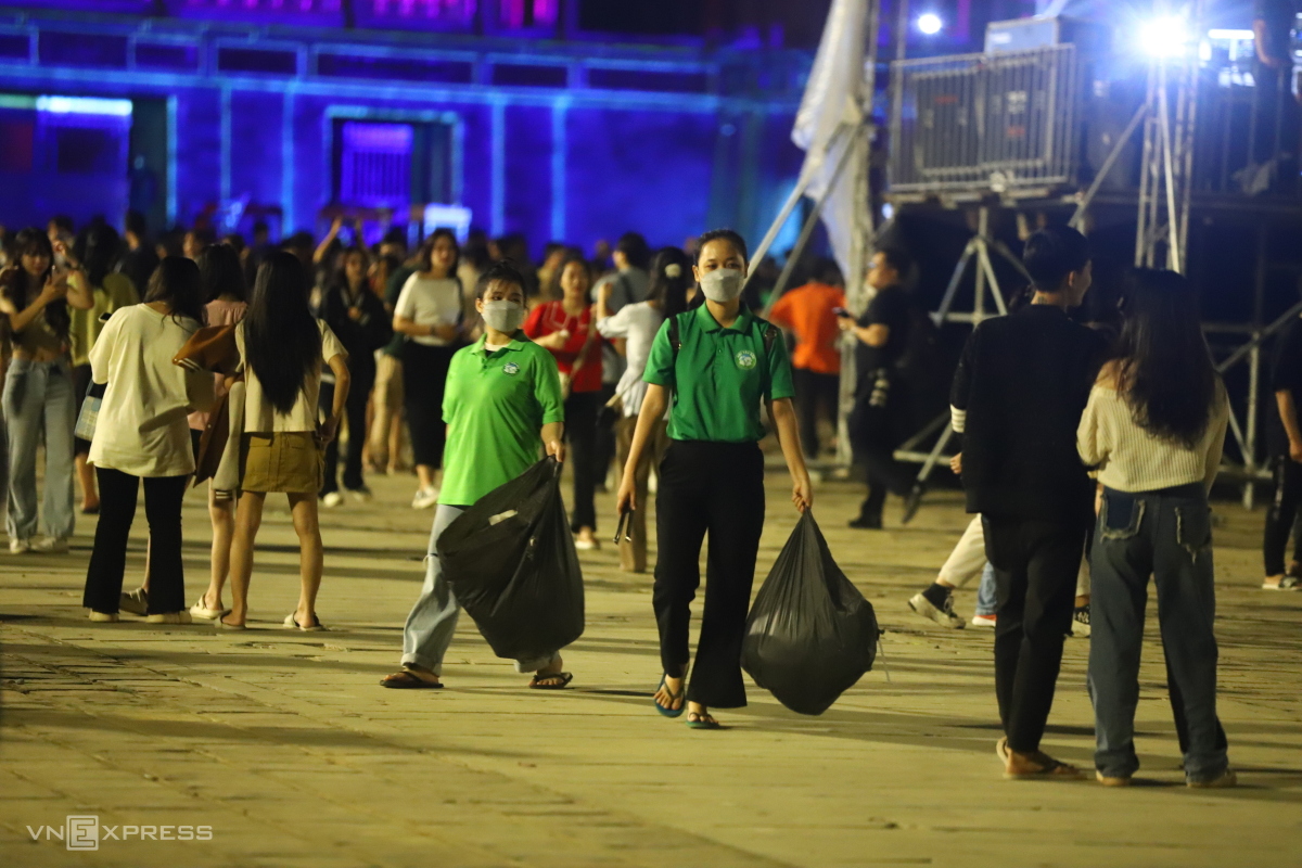 Sau chương trình, các bạn trẻ Huế đã cùng nhau dọn chai nhựa, bao nylon trả lại mặt bằng sạch cho Quảng trường Ngọ Môn.