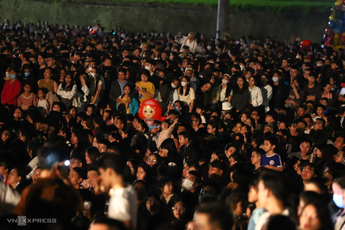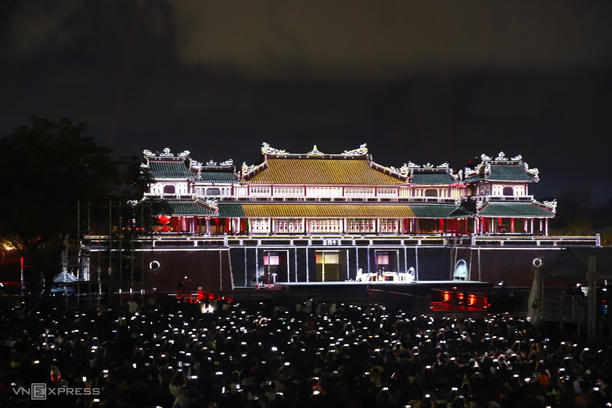 Khu vực Quảng trường Ngọ Môn chật kín người theo dõi. Nhiều người bày tỏ hài lòng với màn trình diễn kéo dài hơn 60 phút này.