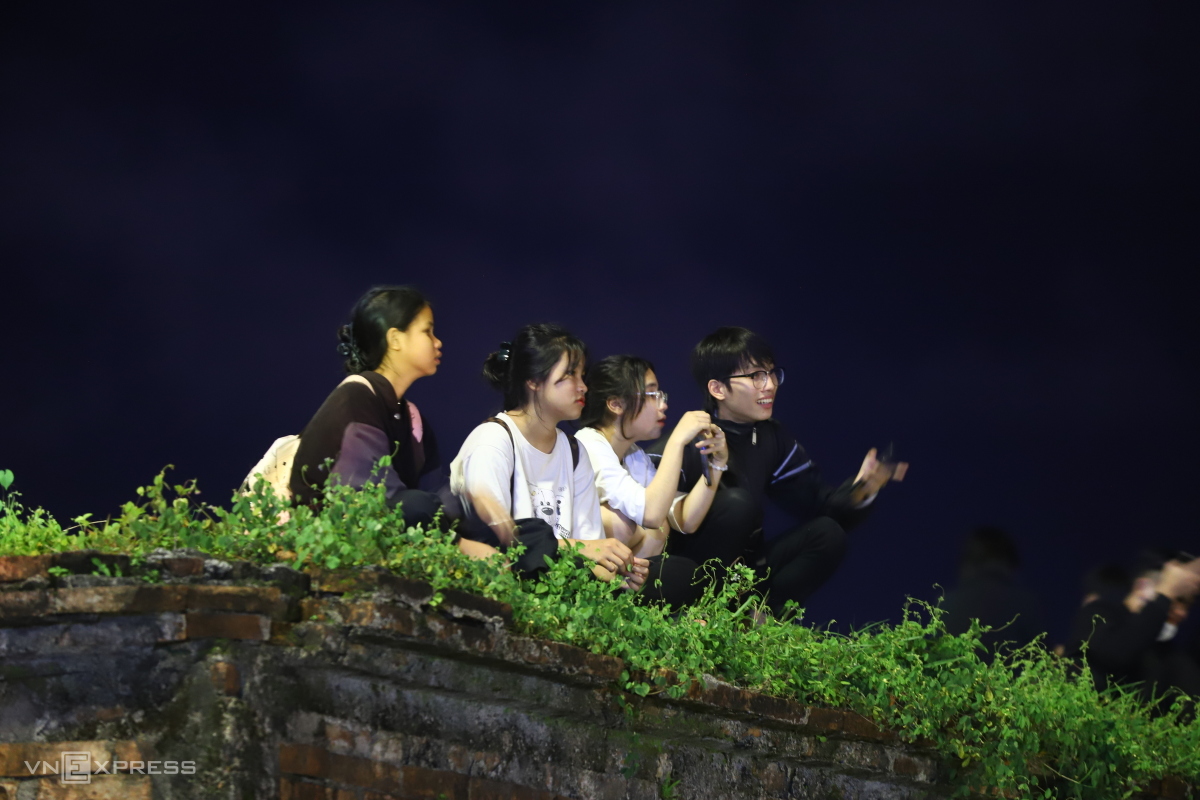 Nhiều người dân leo lên khu vực Thượng Thành để theo dõi đêm trình diễn.