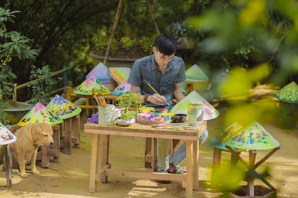 Suy nghĩ đó đã thôi thúc anh Nhật biến ngôi nhà của mình trở thành cầu nối mà khách du lịch có thể đến trải nghiệm vẽ tranh lên vành nón rồi họ lại mang chiếc nón đó vi vu sang tận trời Tây.