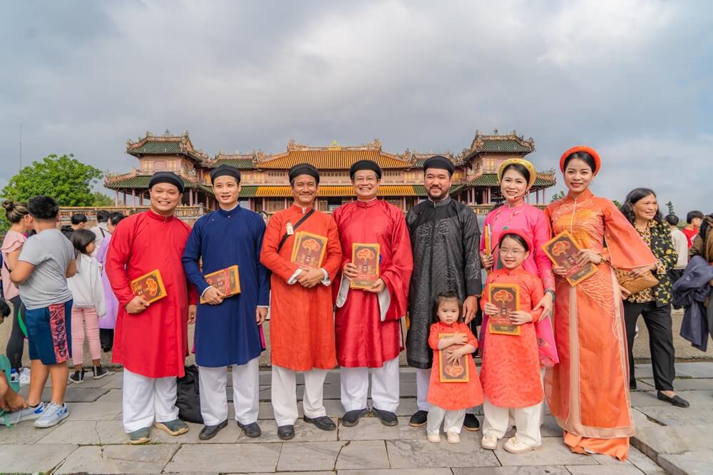 Mặc áo dài ngũ thân trải nghiệm lễ hội văn hóa cung đình triều Nguyễn tại Festival Huế 2024