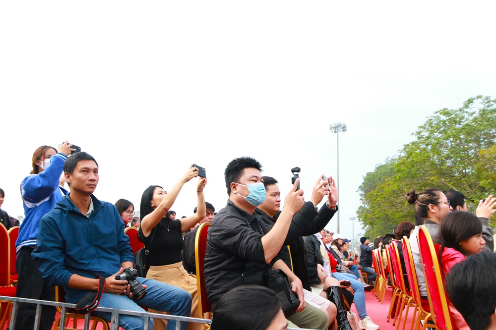 Nhân dân địa phương và du khách thích thú ghi lại hình ảnh Lễ Ban sóc tại chương trình