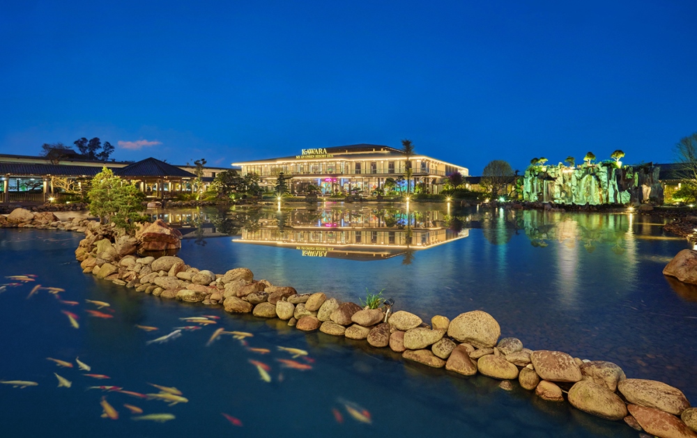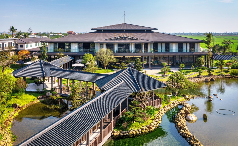 Khi bước vào cổng khu nghỉ dưỡng, du khách có thể nhận ra sự đồng nhất trong từng đường nét thiết kế thể hiện văn hóa kiến trúc Nhật Bản, với sự phân chia không gian hài hòa.