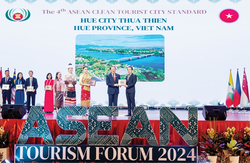Ông Nguyễn Văn Phúc, Giám đốc Sở Du lịch phấn khởi kể, trong khuôn khổ Diễn đàn Du lịch Đông Nam Á - ATF diễn ra tại thủ đô Vientiane (Lào), Huế đã được trao giải thưởng là Thành phố Du lịch sạch ASEAN 2024. Không dừng lại đó, Huế còn có thêm hai giải thưởng Du lịch ASEAN 2024 được trao tại sự kiện ATF 2024, đó là sản phẩm du lịch bền vững ASEAN 2024, dành cho du lịch trải nghiệm văn hóa - nghệ thuật - ẩm thực thực dưỡng chay tại An Nhiên Garden (Tỉnh lộ 10, phường Phú Thượng, TP. Huế (cũ)) và giải thưởng về địa điểm tổ chức MICE ASEAN 2024 - hạng mục địa điểm tổ chức sự kiện dành cho khách sạn Silkpath Grand Huế (số 2, đường Lê Lợi). Đây là lần thứ hai liên tiếp khách sạn Silkpath Grand Huế nhận được giải thưởng này.