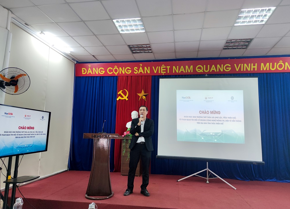 Ông Tống Phước Minh, Phó Chủ tịch Hội CNTT & ĐTVT tỉnh Thừa Thiên Huế chia sẻ với học sinh Trường THPT Thừa Lưu về vấn đề nguồn nhân lực tại các doanh nghiệp trên địa bàn tỉnh Thừa Thiên Huế