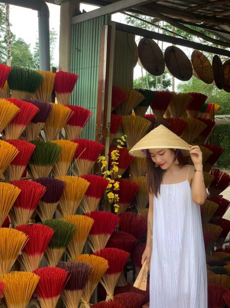 Làng hương Thủy Xuân là nét chấm phá đặc sắc với vẻ đẹp rạng rỡ, nổi bật trong hành trình check-in Huế của bạn Thùy Anh