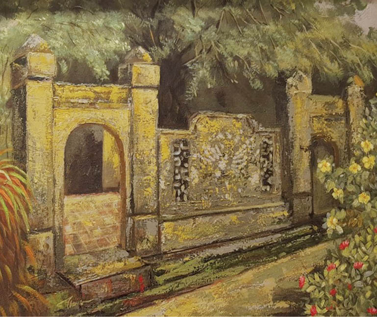Bằng chất liệu chì than và màu nước, Dũng đã thả hồn vào không gian của miếu cây thị cùng bóng thị cổ thụ một cách huyền ảo, tuyệt đẹp. Ở đó hồn xưa của một công trình cổ kính vẫn còn khá nguyên vẹn được đặc tả chi tiết từng kiến trúc cho đến khung cảnh xung quanh. Chàng sinh viên gốc Phú Yên kể, từng đi nhiều làng quê Việt Nam, trong đó có nhiều ngôi làng cổ, nhưng ấn tượng nhất vẫn là làng cổ Phước Tích của vùng đất Cố đô. Đó không chỉ là một bối cảnh để sáng tác mà ở nơi đó còn cung cấp rất nhiều kiến thức về văn hóa, lịch sử cũng như được đắm mình trong tình yêu về kiến trúc, di sản. “Mình vẽ về Phước Tích như vẽ về chính làng quê của mình”, Dũng trải lòng.