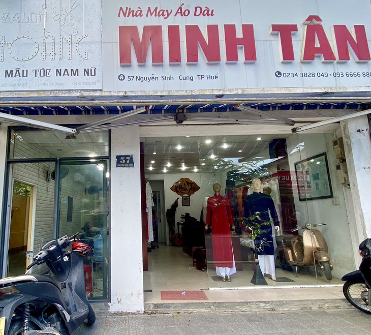 Dù chưa một ngày được gọi là “nghệ nhân may áo dài” nhưng nhà may Minh Tân trên phố Nguyễn Sinh Cung, thành phố Huế do ông gây dựng gần ¾ thế kỷ đã trở thành thương hiệu lâu đời và nổi tiếng ở đất cố đô: “Tôi truyền nghề cho rất nhiều cháu rồi. Người ngày xưa làm sắc sảo hơn. Nên bây giờ, tôi bắt buộc phải làm cho cẩn thận. Như cháu Nguyễn Quốc Hòa là con tôi, nối nghiệp. Tôi bày cho bằng cách vẽ làm hộp nút thắt. Con tôi bây giờ đã nhớ và làm đẹp. Trong áo dài, đường kim mũi chỉ phải sắc sảo, đường viền cũng phải sắc sảo. Lúc xưa, tà áo úp. Họ mặc áo dài vào làm sao 4 tà úp lại vào nhau. Và vạt dưới không đánh vồng mà phải úp đều tà. Khó là khó ở đó”.