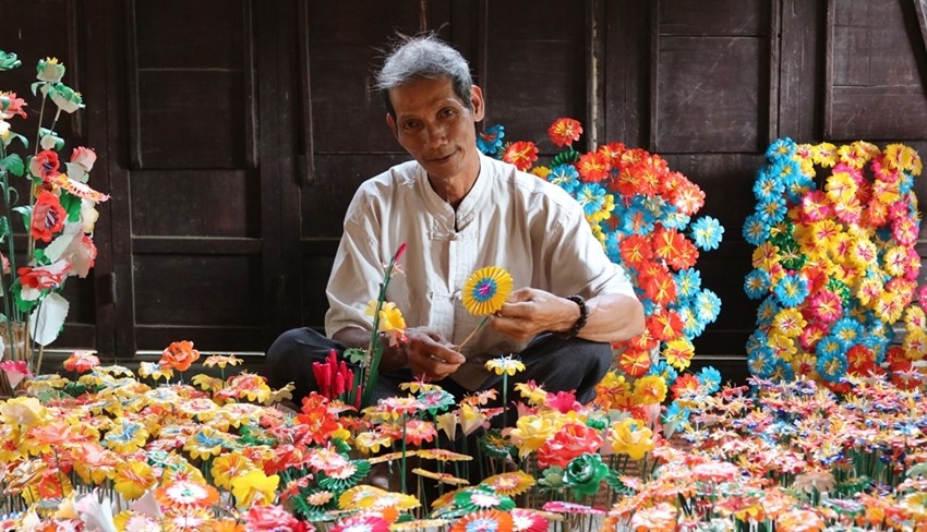 Bác Trần Phú năm nay 63 tuổi - một nghệ nhân nổi tiếng của vùng và là đời thứ 3 trong gia đình có truyền thống làm hoa giấy. Bác chia sẻ: "Làm hoa giấy trước đây không đảm bảo được cuộc sống như hiện nay, chỉ bán được vào những dịp tết còn thời gian khác phải làm thêm các công việc đồng áng để có thêm chi phí. Còn bây giờ hoa giấy được đặt mua quanh năm, được nhiều du khách biết đến và tham gia trải nghiệm làm hoa”.