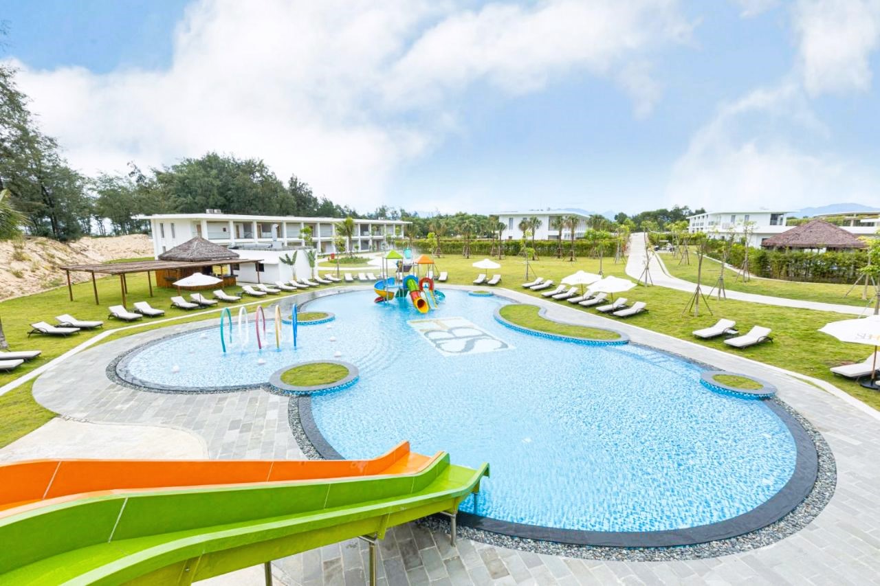 SBH Gloria Hue Resort sở hữu hồ bơi rộng lớn với các khu vực riêng biệt cho người lớn và trẻ em. Đặc biệt, khu công viên nước với độ sâu phù hợp, an toàn cho trẻ nhỏ là điểm đến yêu thích của các gia đình. Đây là không gian vui chơi an toàn và bổ ích, giúp các bé thỏa sức khám phá và vui đùa trong khi gia đình tận hưởng những phút giây thư giãn.
