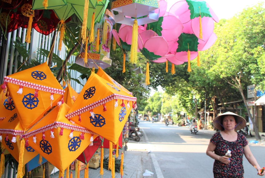 Nằm gần cuối đường Chi Lăng (TP. Huế), nơi còn một số ít hộ dân làm lồng đèn, thời điểm này đang tất bật với những đơn hàng đã nhận. Những chiếc đèn bằng nhựa cho đến vải được trang trí một cách khéo léo với hình tượng Phật, hoa sen và một số họa tiết tạo nên sự lung linh, thu hút người đi đường. Tùy theo loại đèn như ngôi sao, hoa sen, trái ú… và chất liệu mà giá khác nhau, chênh lệch từ vài chục đến 100.000 đồng/chiếc.