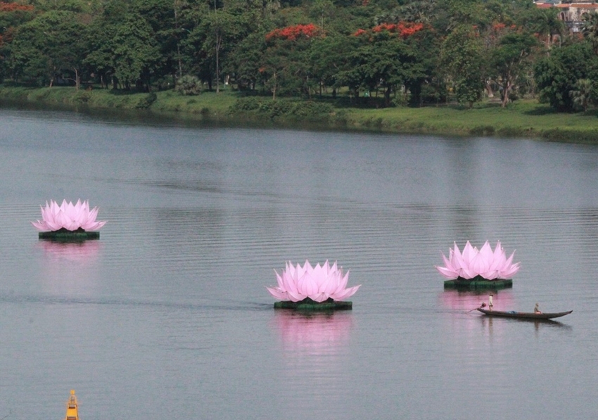 Thời điểm này, việc hạ thủy các đài sen trên sông Hương cũng đã hoàn tất