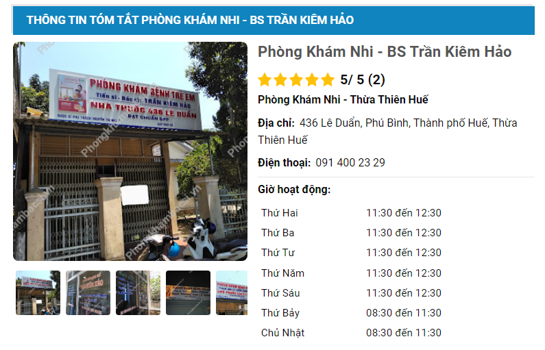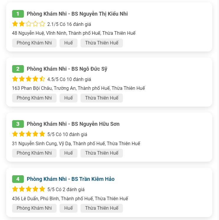 Kết quả tìm kiếm các phòng khám Nhi uy tín tại tỉnh Thừa Thiên Huế
