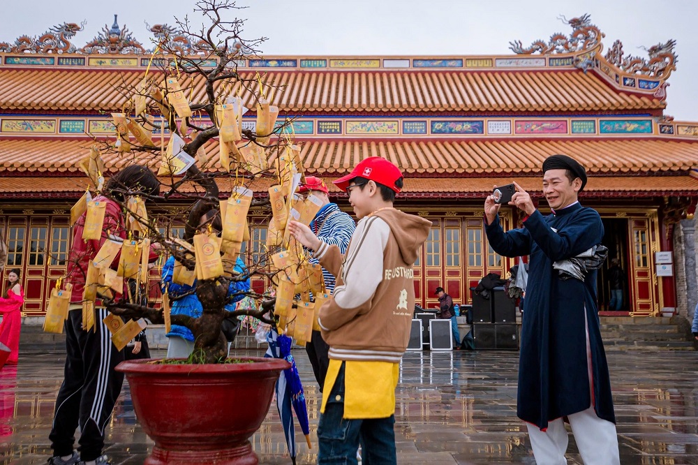 Du khách hào hứng với lộc đầu năm tại Đại Nội - Huế