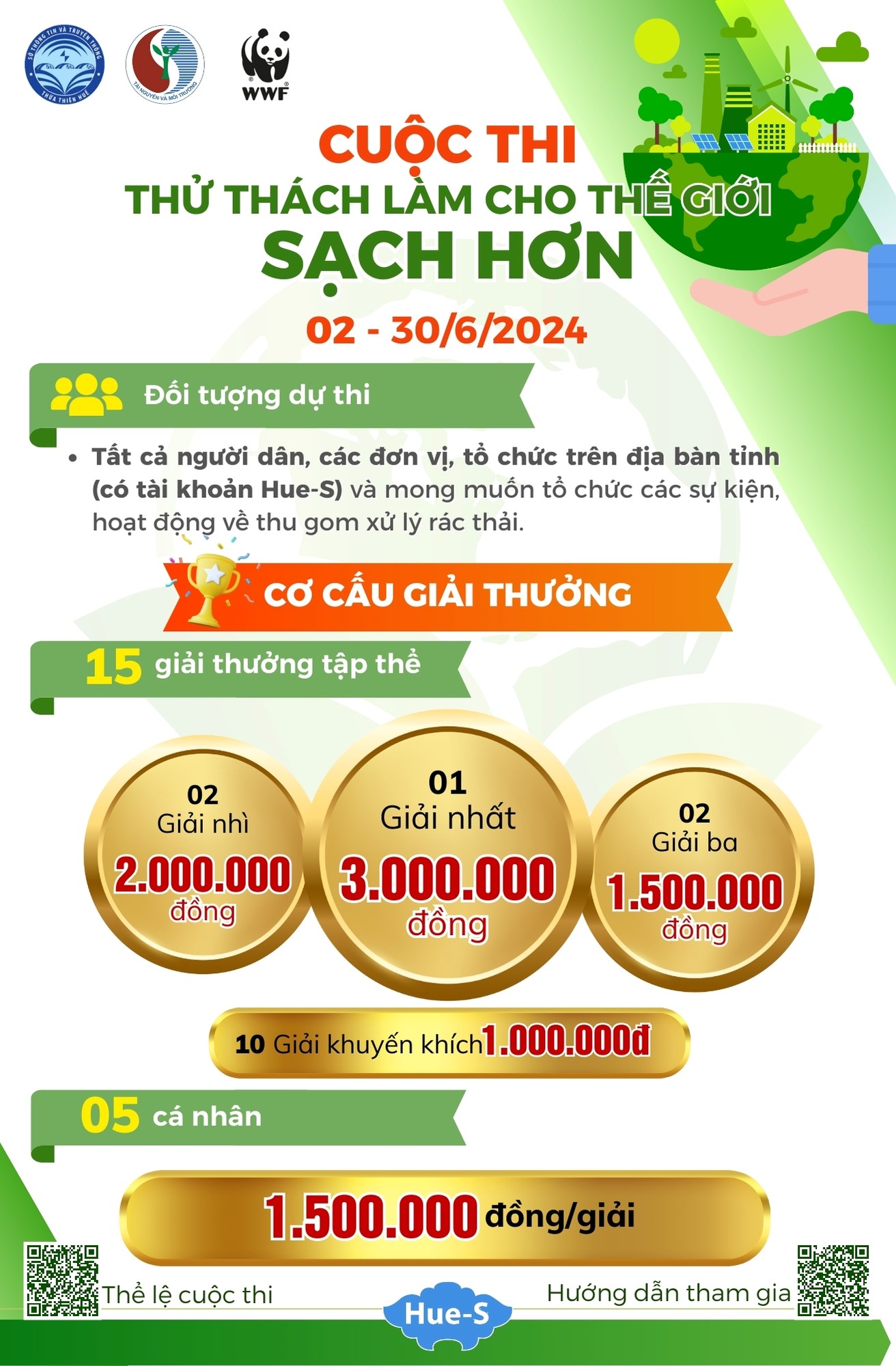 Thực hiện Kế hoạch số 219/KH-UBND ngày 27/5/2024 của Ủy ban nhân dân tỉnh Thừa Thiên Huế về việc tổ chức Mít tinh hưởng ứng Ngày Môi trường thế giới 05/6 và Tháng hành động vì môi trường; Ngày Chủ nhật xanh năm 2024, Sở Thông tin và Truyền thông đã ban hành Kế hoạch số 1518/KH-STTTT, ngày 31 tháng 5 năm 2024 về việc tổ chức Cuộc thi Thử thách làm cho thế giới sạch hơn trên nền tảng số Hue-S.