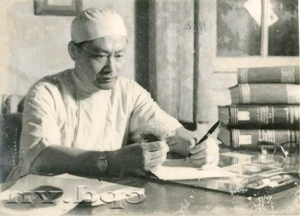 Bác sĩ Tôn Thất Tùng đang nghiên cứu trên bệnh phẩm (gan khô) (năm 1962). Nguồn: Tư liệu