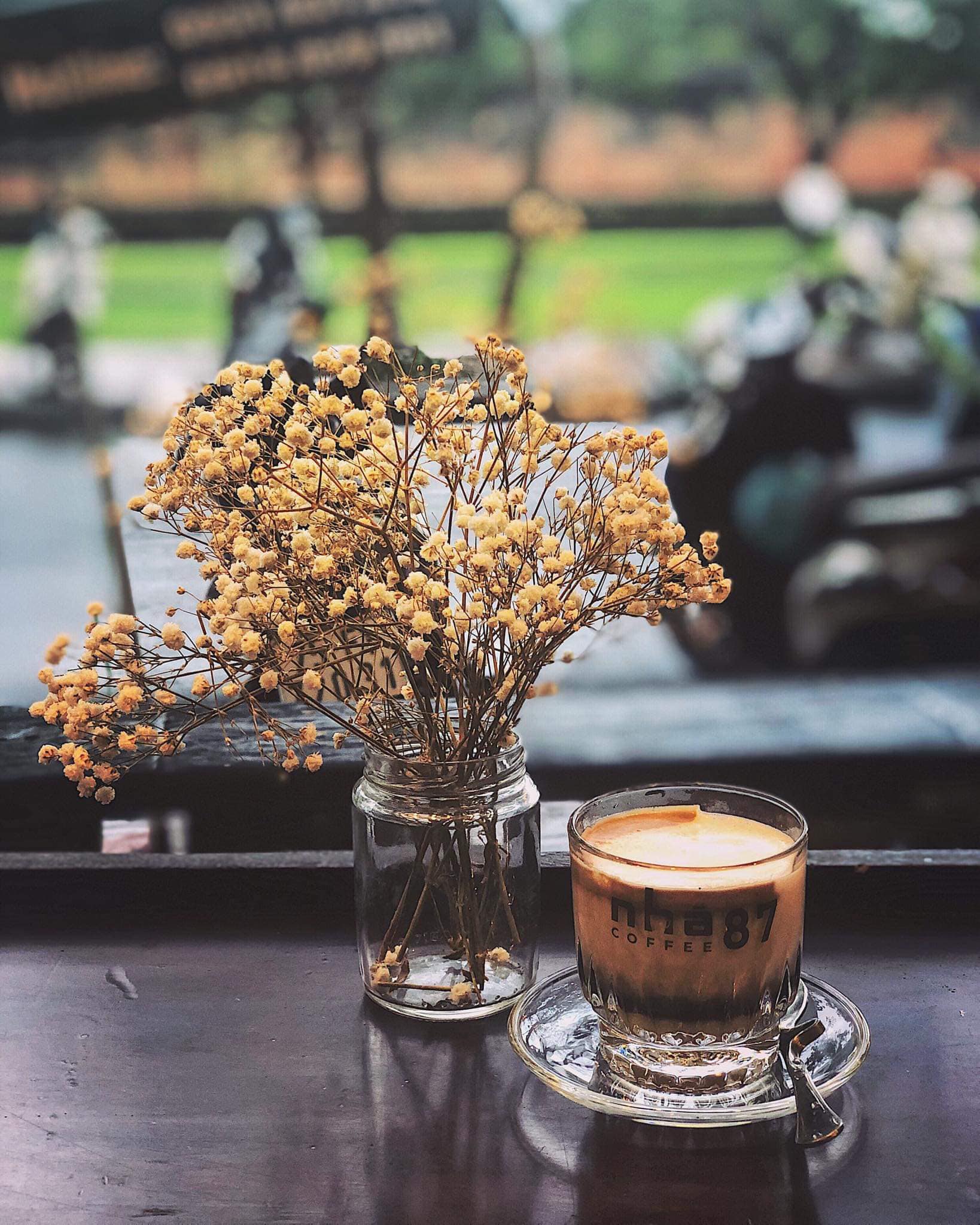 Không gian rộng rãi với tầm nhìn tuyệt đẹp ra Đại nội và phố phường là điểm nổi bật của Nhà 87, một quán cà phê được nhiều người biết đến. Thiết kế của quán mang phong cách hoài cổ và có nhiều góc check-in thú vị với phong cách Huế. Khác với việc pha bằng phin như ở Cà phê Muối, các thức uống tại Nhà 87 được pha từ máy với hương vị nhẹ dịu hơn. Cà phê muối tại Nhà 87 Coffee ít ngọt hơn so với các quán khác, tạo nên vị đắng nhẹ của cà phê kết hợp với vị mặn của muối.
