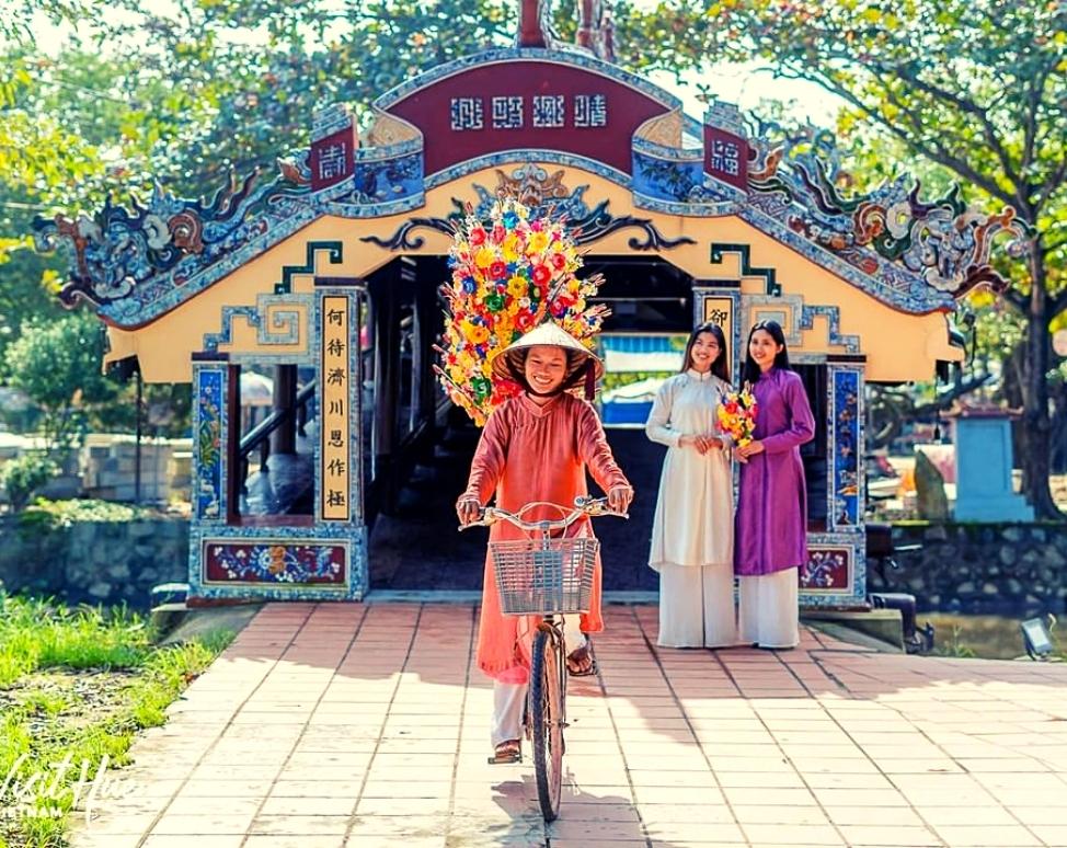 Những địa điểm du lịch miễn phí ở Huế - Tạo dáng chụp ảnh ở làng hương Thủy Xuân (@Khám phá Huế)
