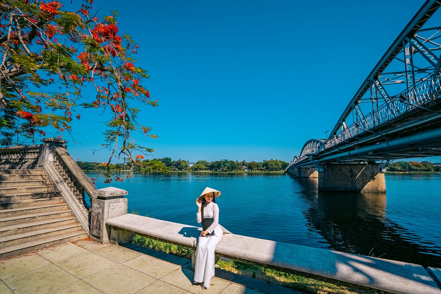 Những địa điểm du lịch miễn phí ở Huế - Cầu Tràng Tiền được xem như là biểu tượng nét đẹp của miền đất Cố Đô. Nơi đây trở thành nguồn cảm hướng vô tận cho những ai yêu nghệ thuật, đến đây bạn có thể thả hồn vào thiên nhiên, ghi lại những khoảnh khắc cùng với áo dài thướt tha sẽ là một bức hình mang vẻ đẹp diệu dàng của người con gái Việt Nam.