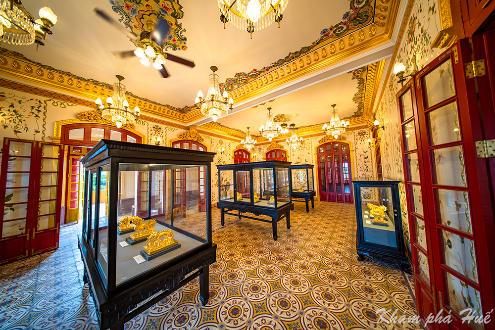 Không gian lộng lẫy của điện Kiến Trung tôn lên vẻ đẹp cho các tác phẩm rồng của Nghệ nhân nhân dân Trần Độ