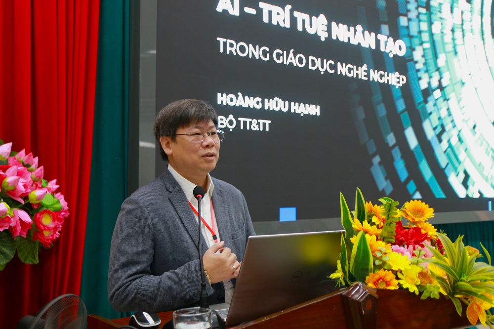 PGS. TS. Hoàng Hữu Hạnh, Phó Vụ trưởng Vụ Hợp tác quốc tế (Bộ Thông tin và Truyền thông) giới thiệu về "Định hướng AI trong giáo dục" tại chương trình