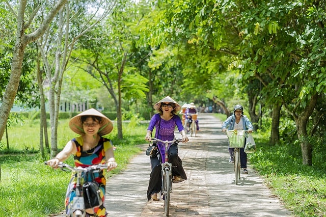 Thong thả đạp xe dưới những hàng cây xanh mát