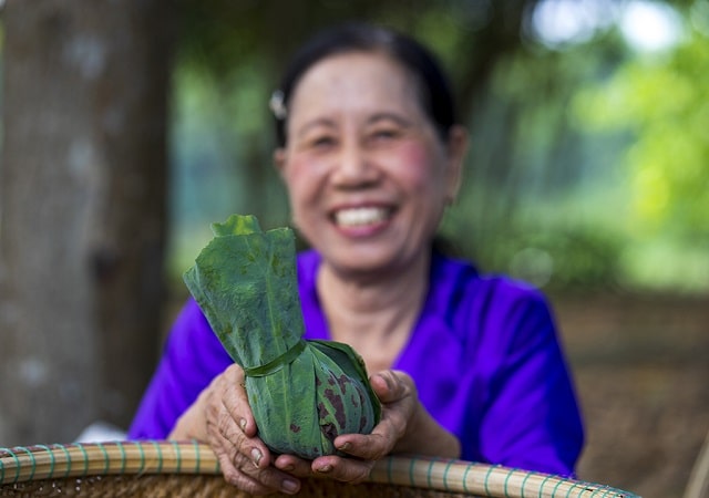 Các món bánh, trà vả, cơm, xôi gói lá sen là đặc sản của Phước Tích