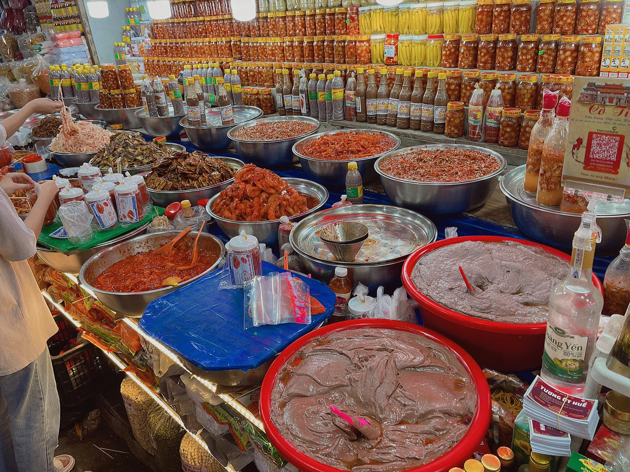 - Chiều đi chợ Đông Ba, rất nhiều đồ đặc sản giá rẻ mua làm quà. Đặc biệt là các loại mắm tươi. Các bạn cứ đi sâu vào chợ, hàng nào đông người mua thì ghé vào mua, giá thành same same nhau. Mình ghé qua cơ sở mè xửng Thiên Hương trên đường Chi Lăng mua thêm quà về nhà.