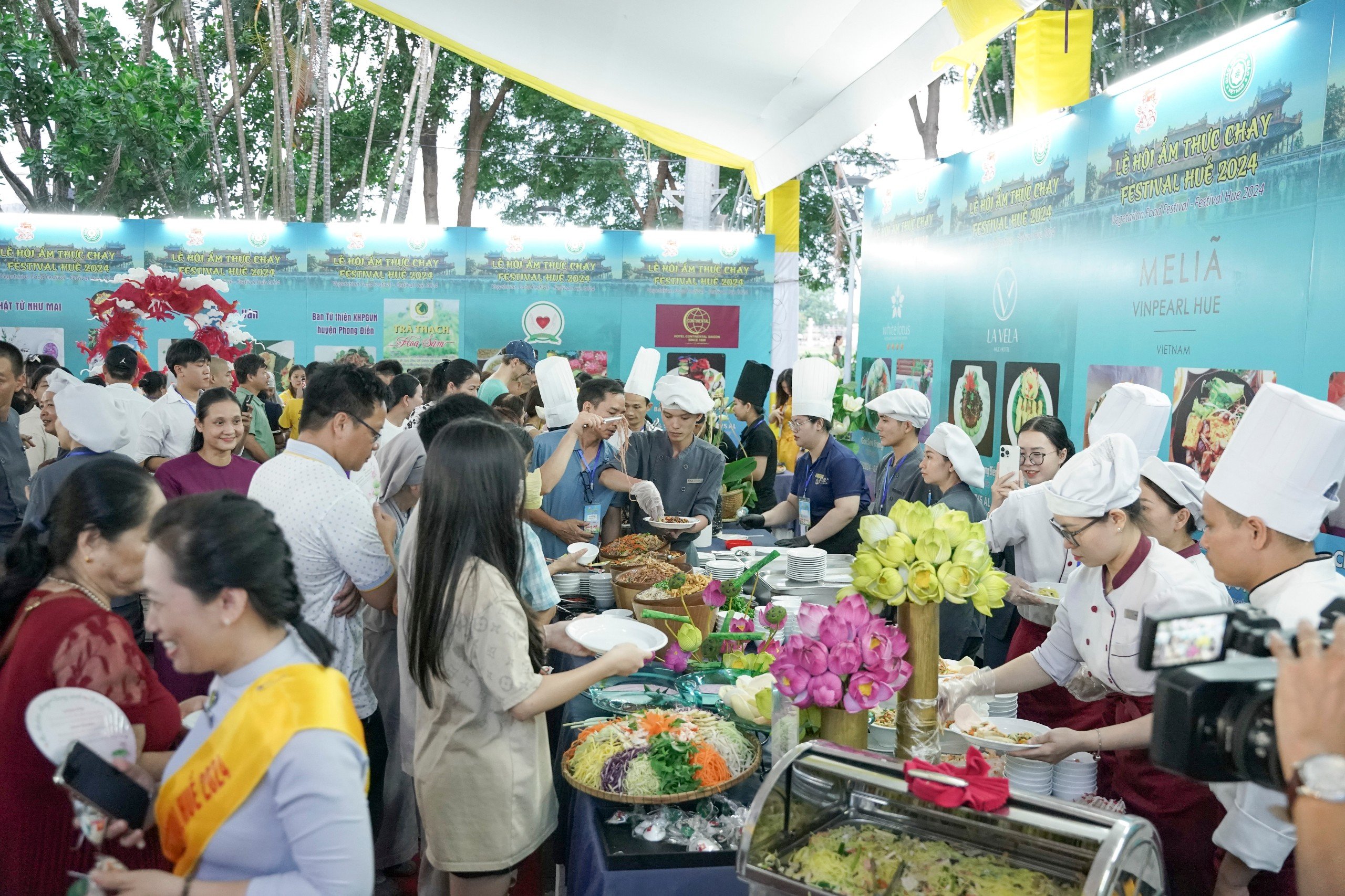 Năm nay, trong khuôn khổ Tuần lễ Festival nghệ thuật Quốc tế Huế 2024, trong hai ngày 8 và 9/6, một lễ hội ẩm thực chay quy mô lớn được tổ chức với 36 gian hàng, 45 đơn vị tham gia, hơn 72 món ăn đến từ các khách sạn, nhà hàng danh tiếng và các chùa trong và ngoài tỉnh.