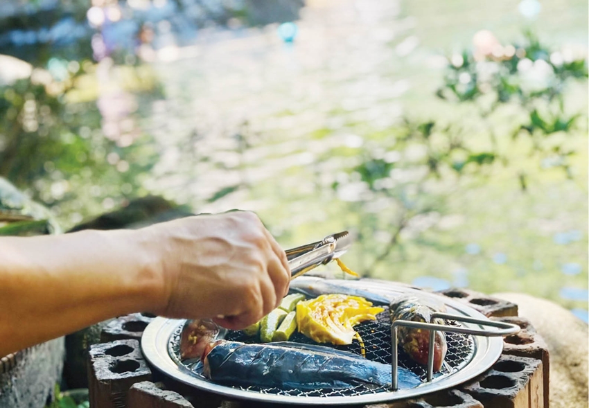 Du khách tự tay làm các món nướng tại Thác Mơ (Nam Đông). Ảnh: MC