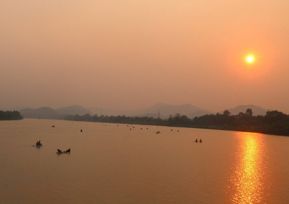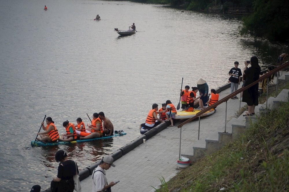 Vào những ngày hè nắng nóng, rất đông người dân tìm đến đây để vui chơi, ngắm hoàng hôn và chèo Sup nhằm làm tan biến đi cái nóng của mùa hè. Ảnh: N.Q.