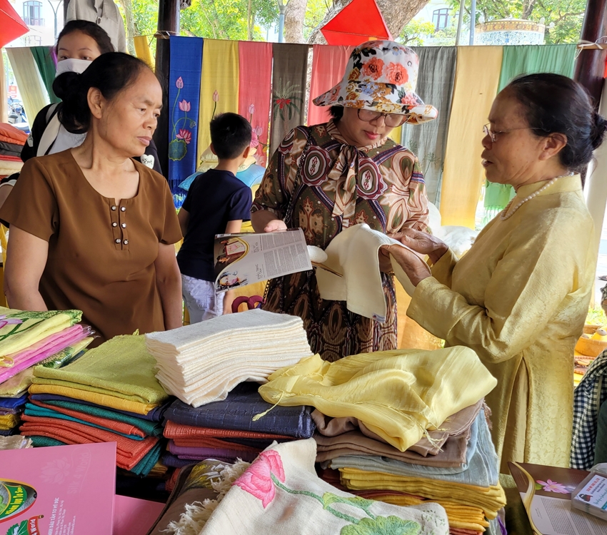 Tại Festival NTT Huế 2023, gian hàng của nghệ nhân Phan Thị Thuận luôn thu hút nhiều du khách dừng chân. Tại đây, du khách không chỉ ngắm nhìn các sản phẩm tơ lụa nổi tiếng được dệt thủ công mà còn trải nghiệm quy trình “giăng tơ, dệt lụa” truyền thống của làng nghề. “Đi qua rất nhiều gian hàng, cùng xem các nghệ nhân thao diễn nghề thủ công song tôi ấn tượng nhất vẫn là quy trình dệt lụa từ tơ sen của nghệ nhân Phan Thị Thuận. Tất cả các công đoạn tạo ra sợi tơ sen đều thật chỉn chu và cầu kỳ nên sản phẩm lụa tơ sen cũng độc đáo và đẹp mắt”, chị Nguyễn Thanh Huyền, du khách đến từ TP. Đà Nẵng chia sẻ.