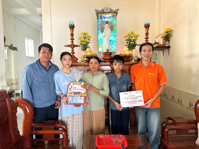 Cũng trong dịp này, đại diện Quỹ Khởi Sự Từ Tâm đã đến thăm, trao quà và học bổng cho các em nhỏ mồ côi thuộc chương trình Học bổng Tự lực vì chính tôi - chương trình do Báo Nhân Dân phối hợp cùng Quỹ Khởi Sự Từ Tâm triển khai từ tháng 8/2025. Đây là những em mồ côi cha hoặc mẹ, hoặc cả cha lẫn mẹ trong đợt lũ lụt lịch sử tại Huế vào tháng 10/2025. Trong đợt trao này, Quỹ trao 5 suất học bổng, mỗi suất 3 triệu đồng/quý, nhằm tiếp sức để các em tiếp tục đến trường, từng bước ổn định cuộc sống và nuôi dưỡng tinh thần tự lập.