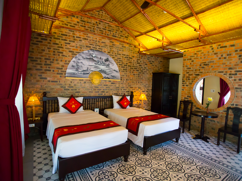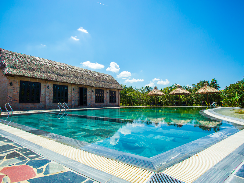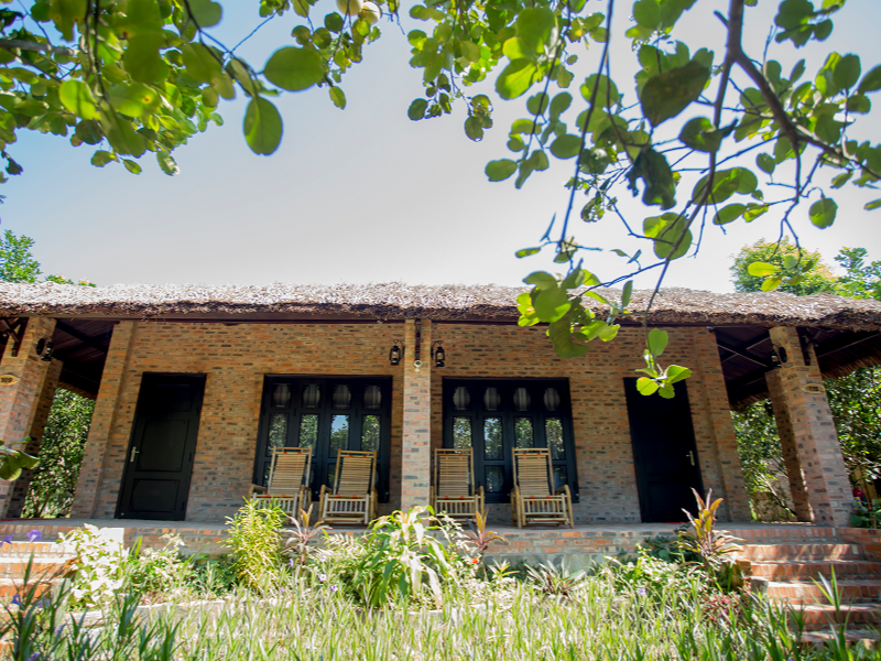Hệ thống 19 phòng tuyệt đẹp của Hue Ecolodge được xây dựng theo phong cách nhà vườn. Mỗi căn nhà gỗ đều có vườn tược xanh um bao quanh. Tạo ra không gian tươi mát, trong lành, rộn ràng tiếng chim ca. Bên cạnh đó, bạn cũng có thể sử dụng hồ bơi riêng để giải nhiệt mùa hè cùng các khu vui chơi dành cho trẻ em.