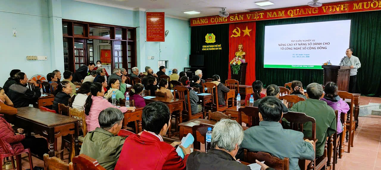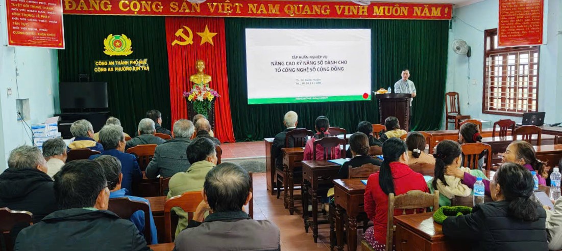 Hưởng ứng phong trào “Bình dân học vụ số” năm 2025 do phường Kim Trà phát động, Trung tâm Công nghệ thông tin thành phố Huế (HueCIT) tiếp tục đồng hành cùng địa phương trong hành trình lan tỏa kiến thức số đến cộng đồng. Sau khi tổ chức thành công lớp tập huấn chuyên đề ứng dụng Trí tuệ nhân tạo (AI) cho hơn 160 cán bộ, công chức, viên chức vào ngày 22/11/2025, HueCIT đã nhanh chóng phối hợp cùng phường Kim Trà mở rộng chương trình đến người dân tại các tổ dân phố, nhằm mang công nghệ đến gần hơn với đời sống thường nhật.
