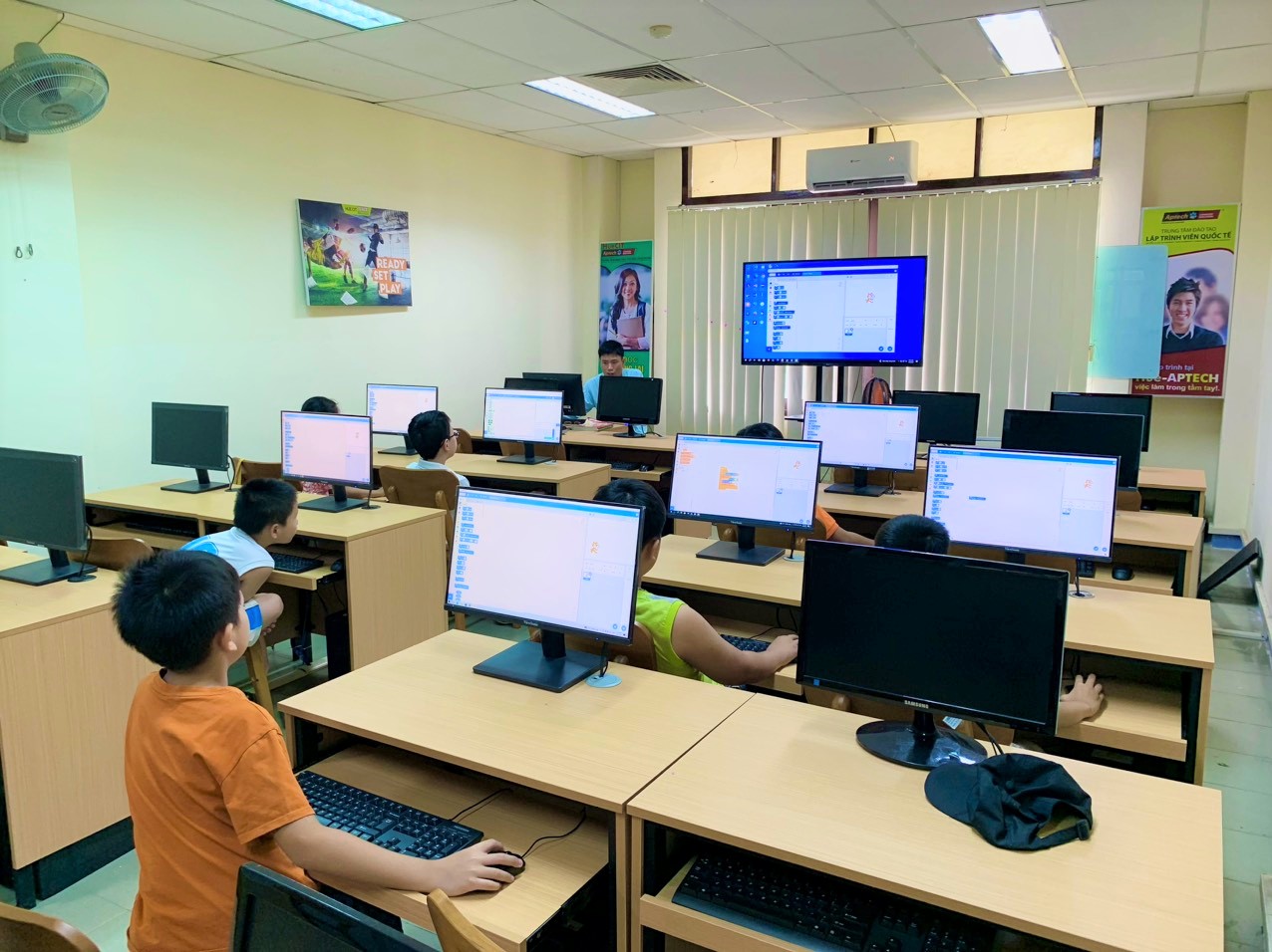 Giờ học lý thuyết về STEM tại HueCIT.edu với hệ thống máy vi tính, trang thiết bị hiện đại