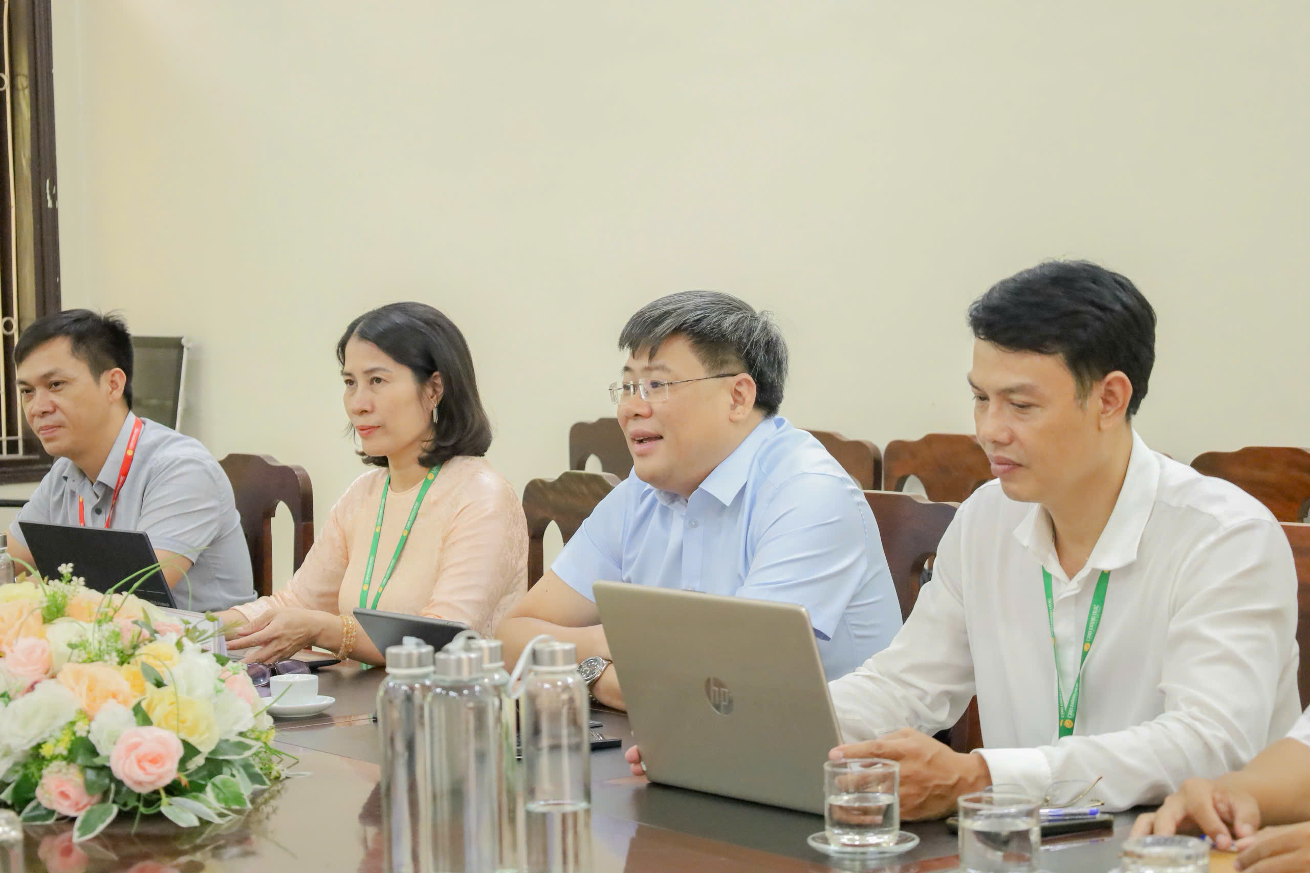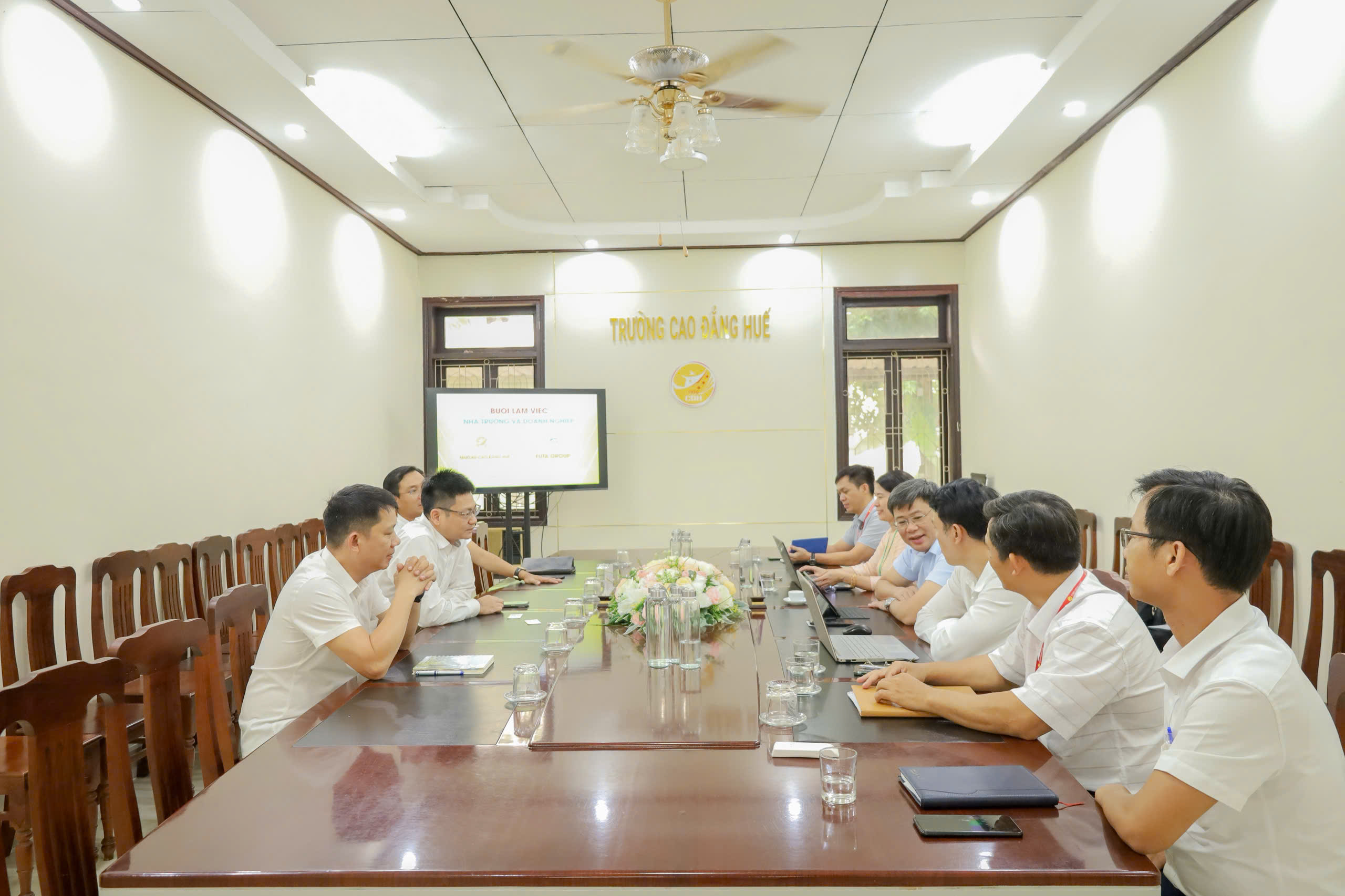 Thầy Hoàng Bảo Hùng - Hiệu trưởng Trường Cao đẳng Huế (ngồi thứ hai bên phải sang) trao đổi tại buổi làm việc