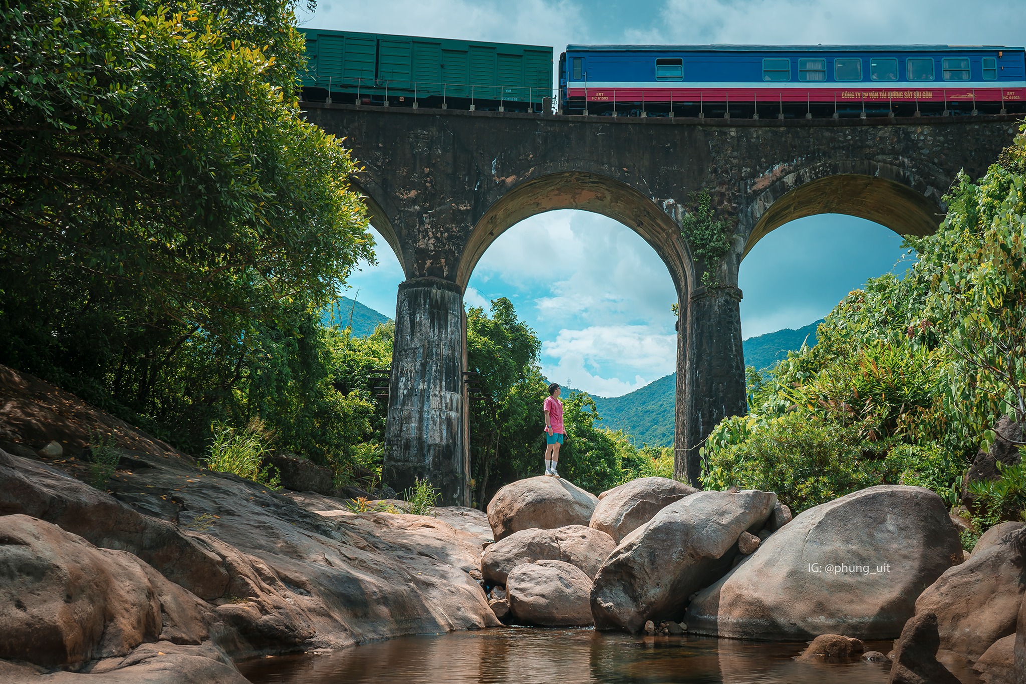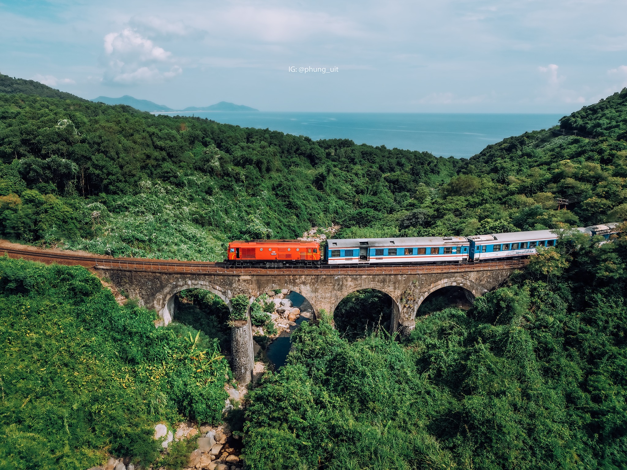 Có lần từ Đà Nẵng ra Huế, tôi dừng chân trên đèo Hải Vân, nơi có một gốc cây cô đơn đứng lặng lẽ giữa đất trời. Từ đây, tôi nhìn thấy đoàn tàu chậm rãi lướt qua vách núi, một bên là biển xanh sâu thẳm, một bên là rừng già hoang sơ. Giữa khung cảnh ấy, một cây cầu cổ kính hiện ra, ẩn mình giữa thiên nhiên như một nét vẽ hoàn hảo trong bức tranh sơn thủy.