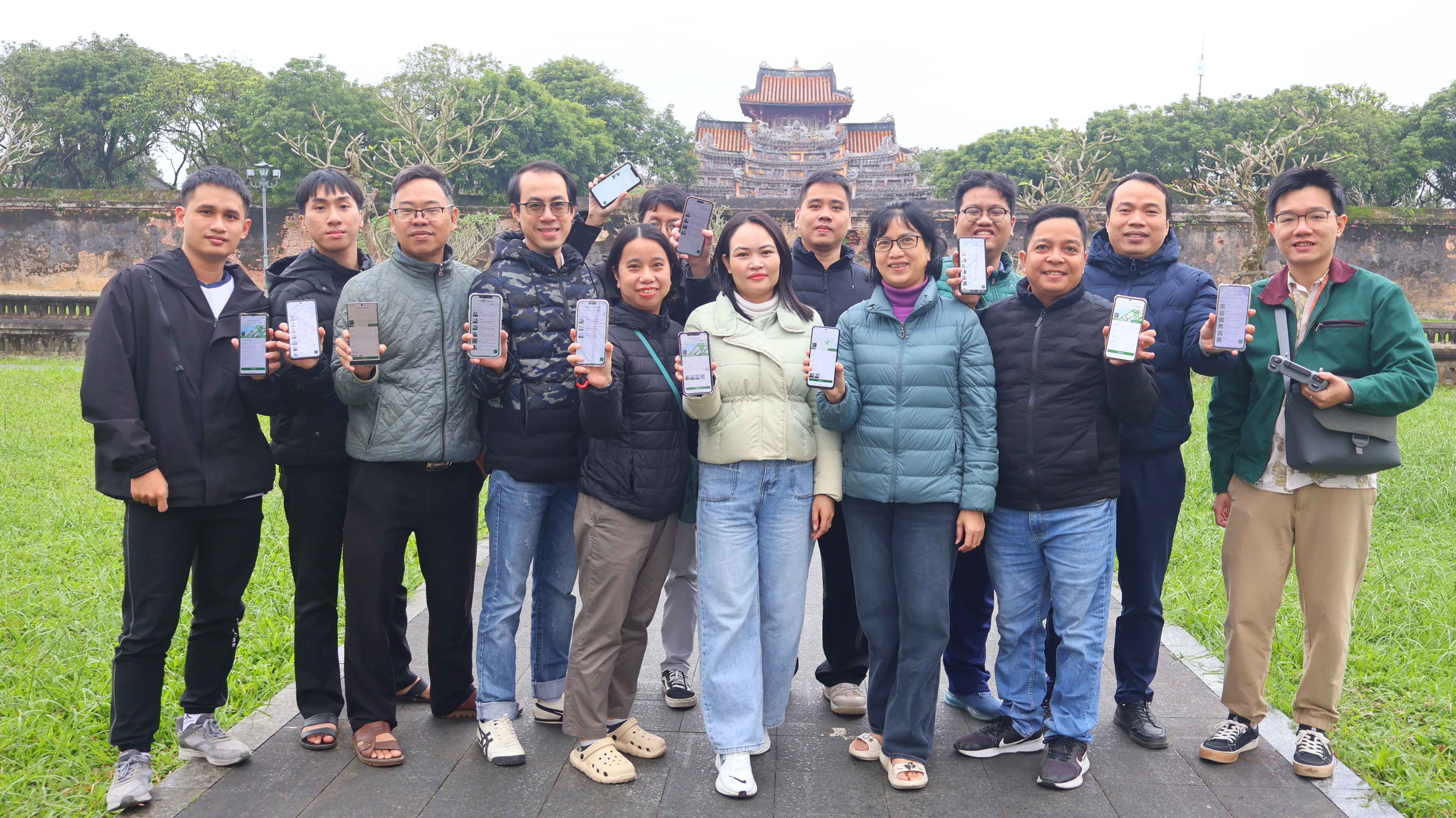 Đội ngũ kỹ thuật HueCIT thao tác nhập dữ liệu cây xanh trực tiếp trên thiết bị di động, cập nhật lên hệ thống quản lý tập trung.