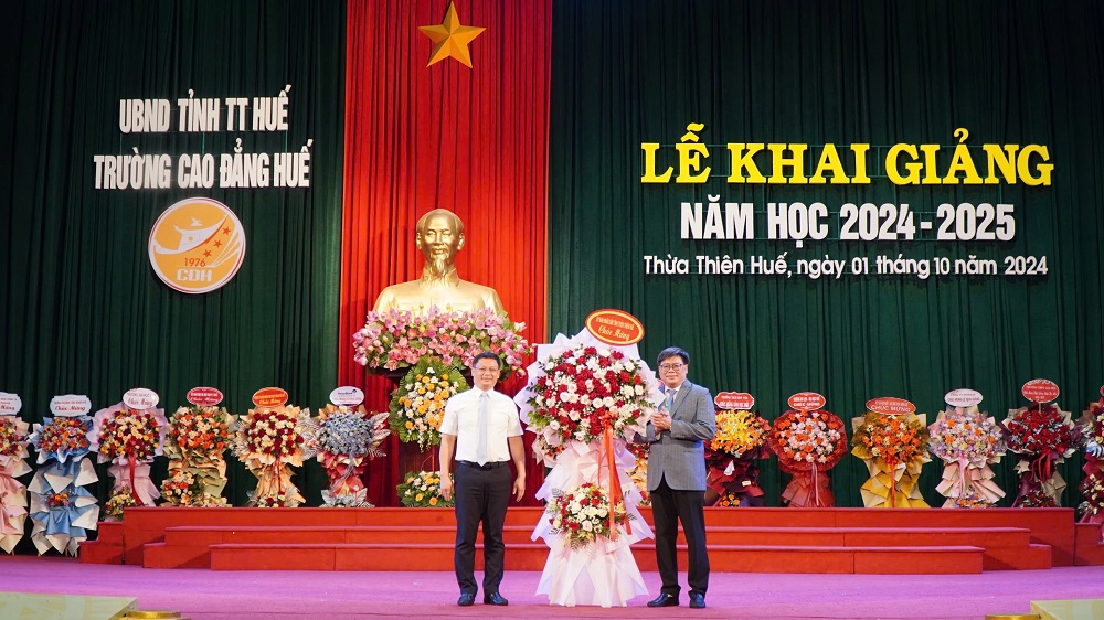 Ông Nguyễn Thanh Bình – UV Ban thường vụ Tỉnh ủy, Phó Chủ tịch thường trực UBND tỉnh Thừa Thiên Huế tặng hoa chúc mừng Trường Cao đẳng Huế nhân dịp Khai giảng năm học mới