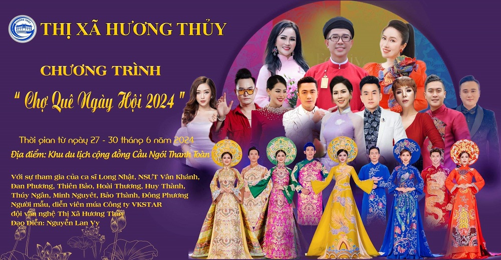Tiếp tục phát huy thương hiệu "Chợ quê ngày hội" qua các kỳ Festival, Festival nghề truyền thống Huế, UBND Thị xã Hương Thủy tiếp tục triển khai chương trình "Chợ quê ngày hội 2024". Chương trình khai mạc sẽ diễn ra vào lúc 19h30 ngày 27/6/2024 tại Khu du lịch cộng đồng cầu ngói Thanh Toàn và kéo dài từ ngày 27 - 30/6/2024.
