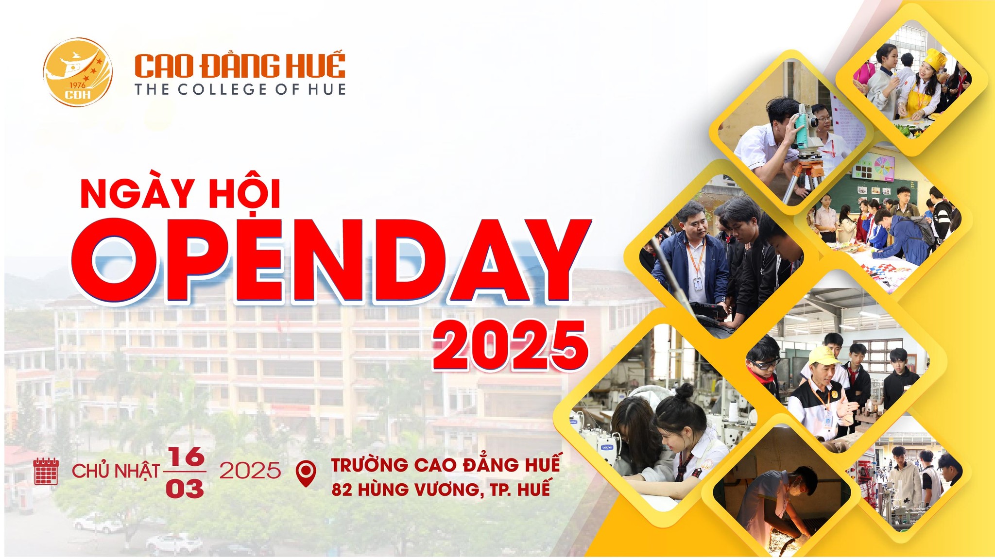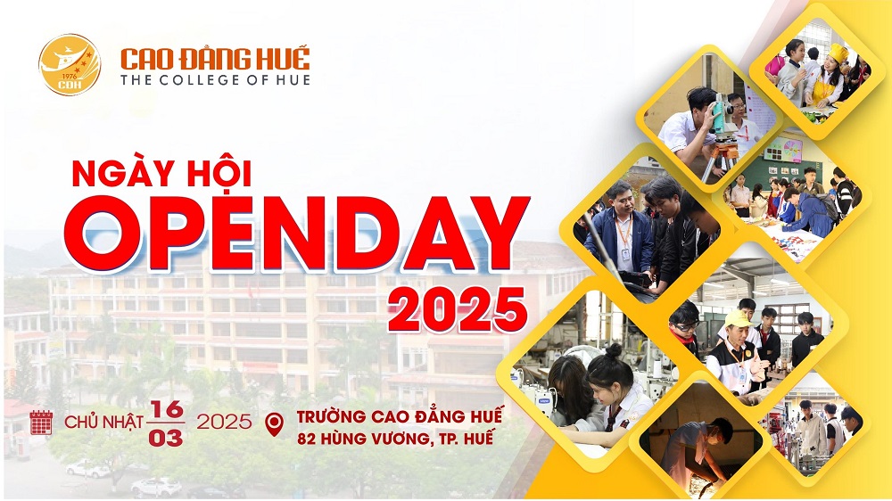 Đến hẹn lại lên, Trường Cao đẳng Huế tổ chức Ngày hội Tuyển sinh & Định hướng nghề nghiệp Open Day 2025 với chủ đề "Kiến tạo tương lai" sẽ diễn ra vào ngày 16/03/2025. Đây là cơ hội vàng để bạn khám phá đam mê, chọn đúng ngành nghề và định hướng tương lai cho bản thân.